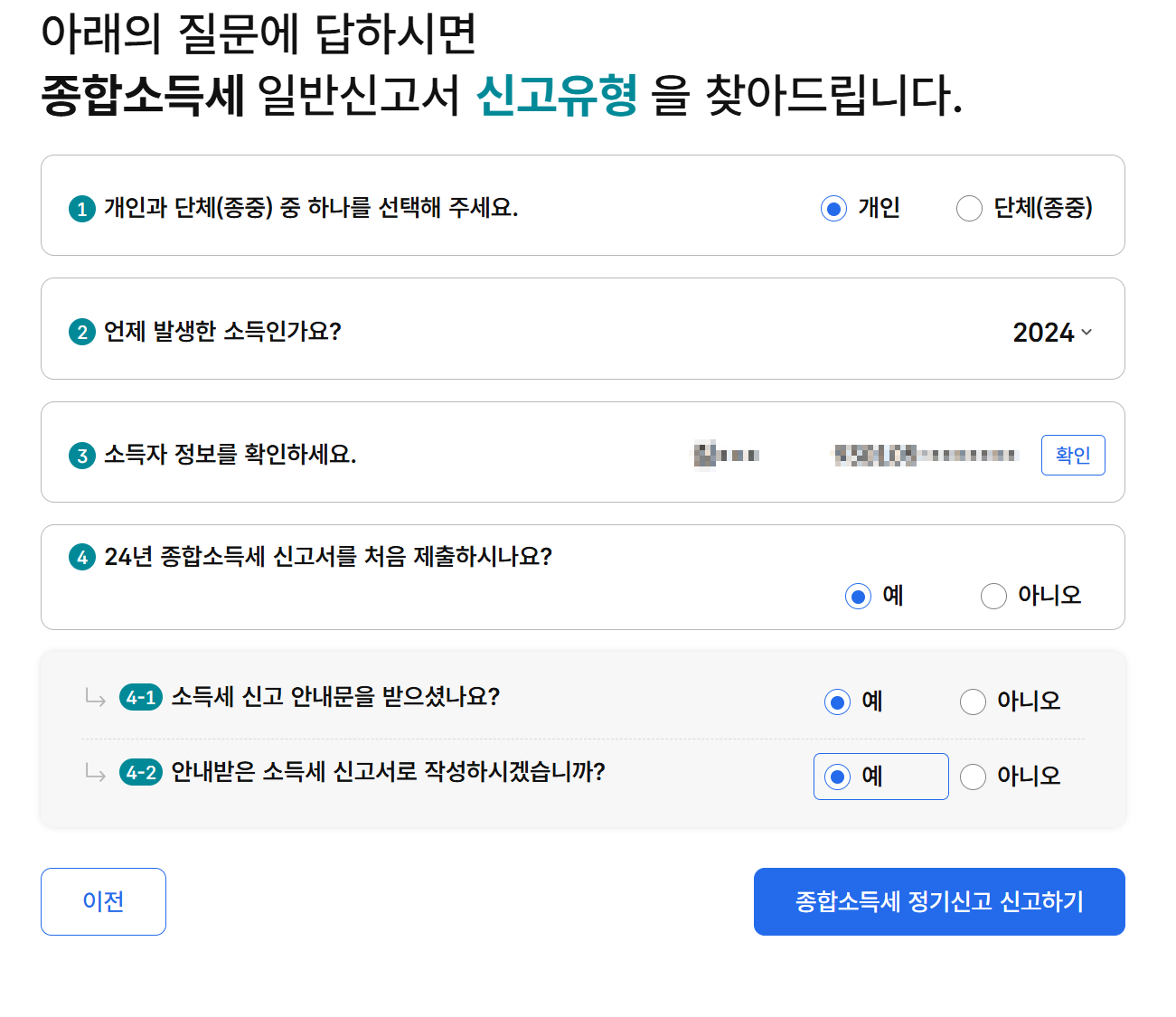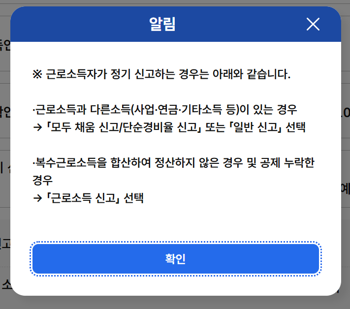 - 일반 신고: 스스로 모든 소득을 입력해야 할 경우