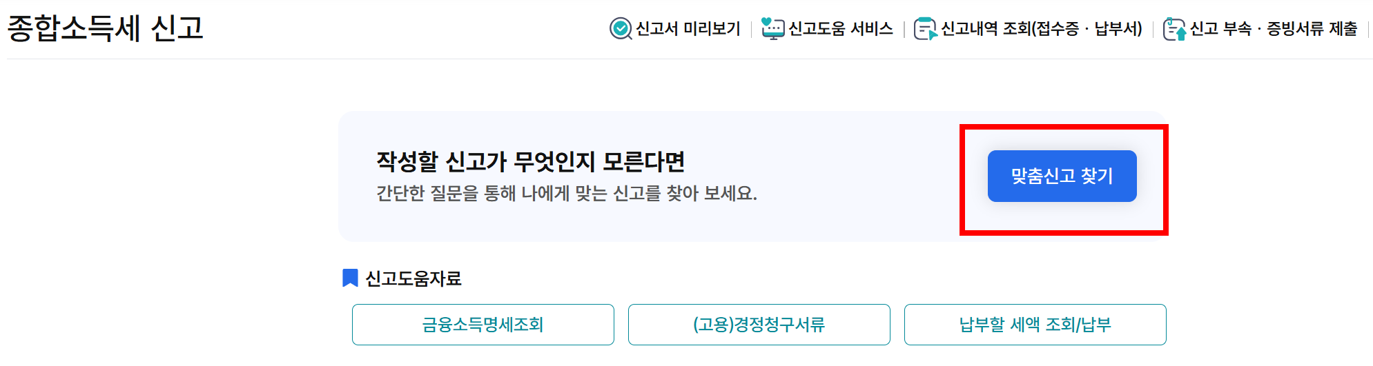 작성할 신고가 무엇인지 모른다면 맞춤신고 찾기 항목을 선택해주세요.