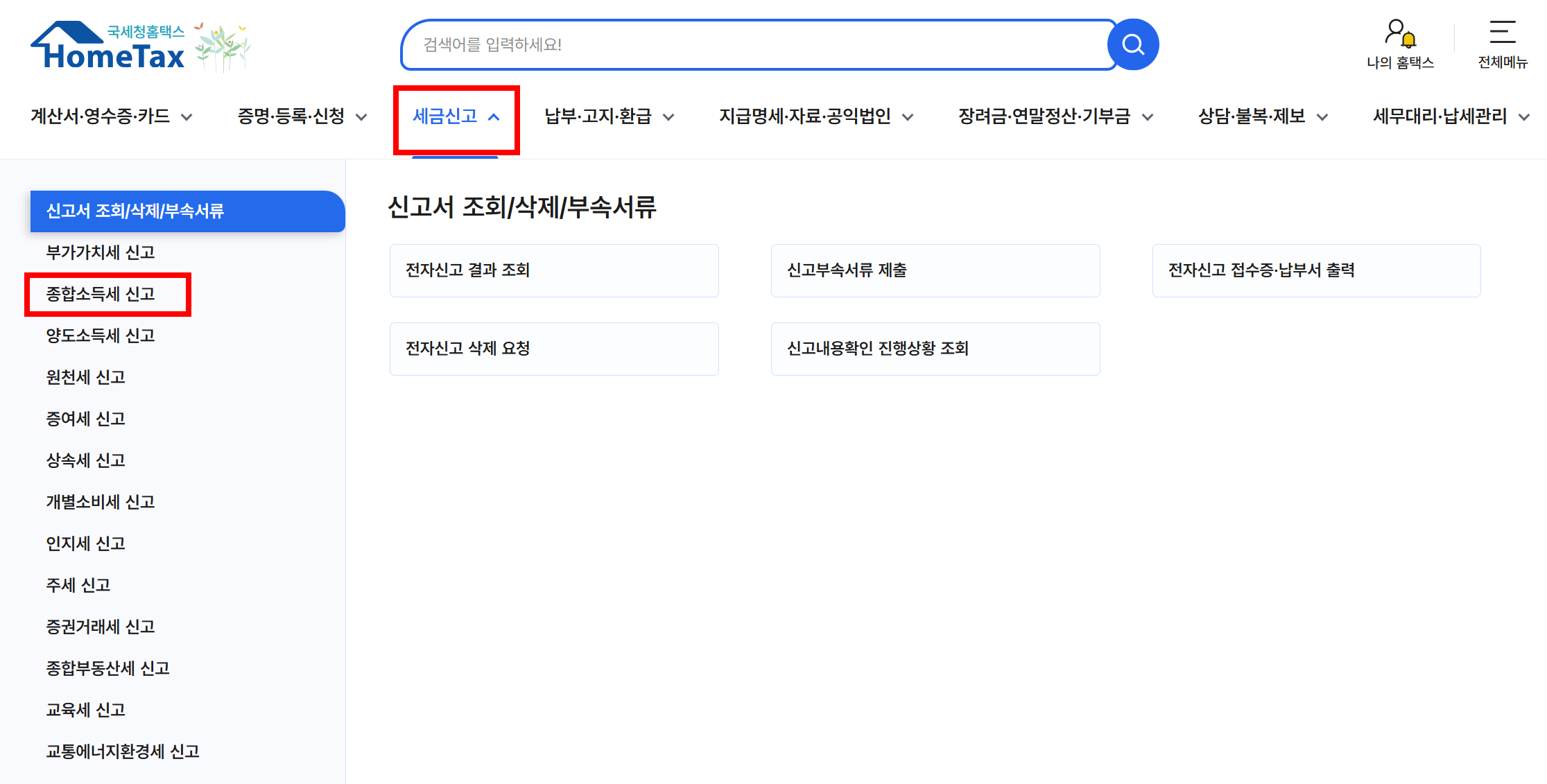 ✅ 2단계: ‘종합소득세 신고’ 메뉴 찾기