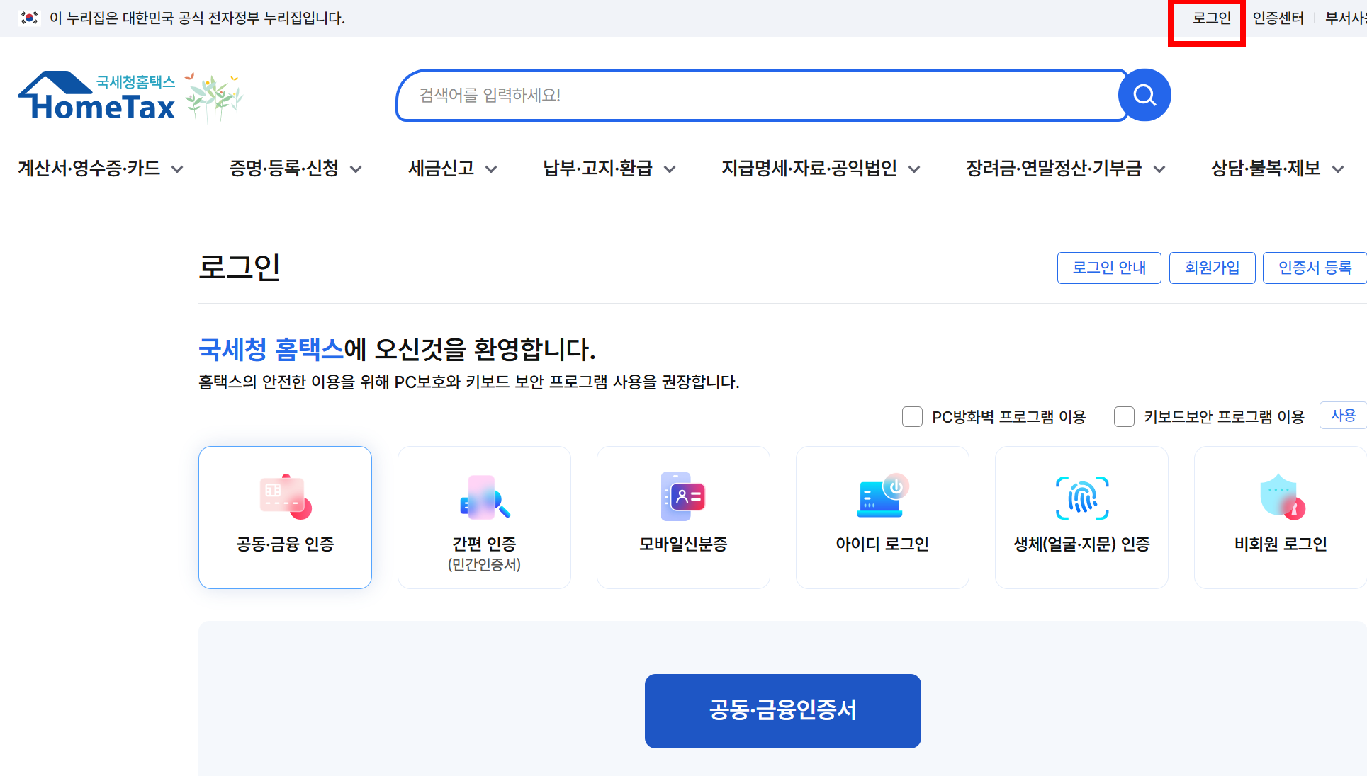 ✅ 1단계: 홈택스 접속 및 로그인