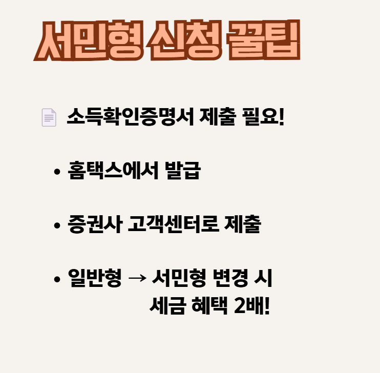 💡 서민형은 소득 조건이 맞는다면 세금 혜택이 2배라 더 유리합니다! 단, 가입 시 관련 서류 제출 필요.