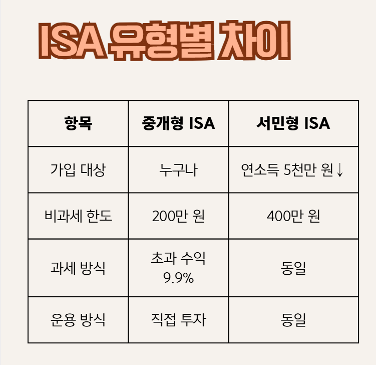 🧩 ISA 유형별 차이: 중개형 vs 서민형(농어민형)