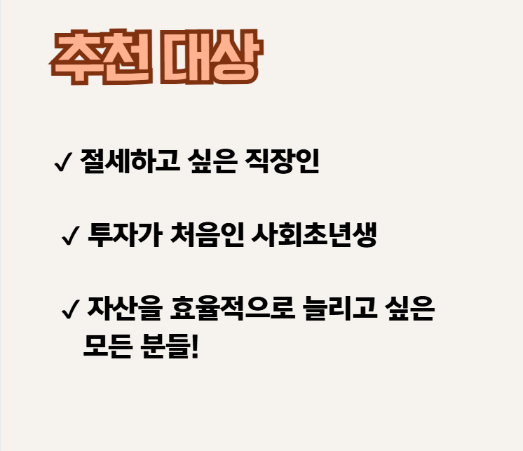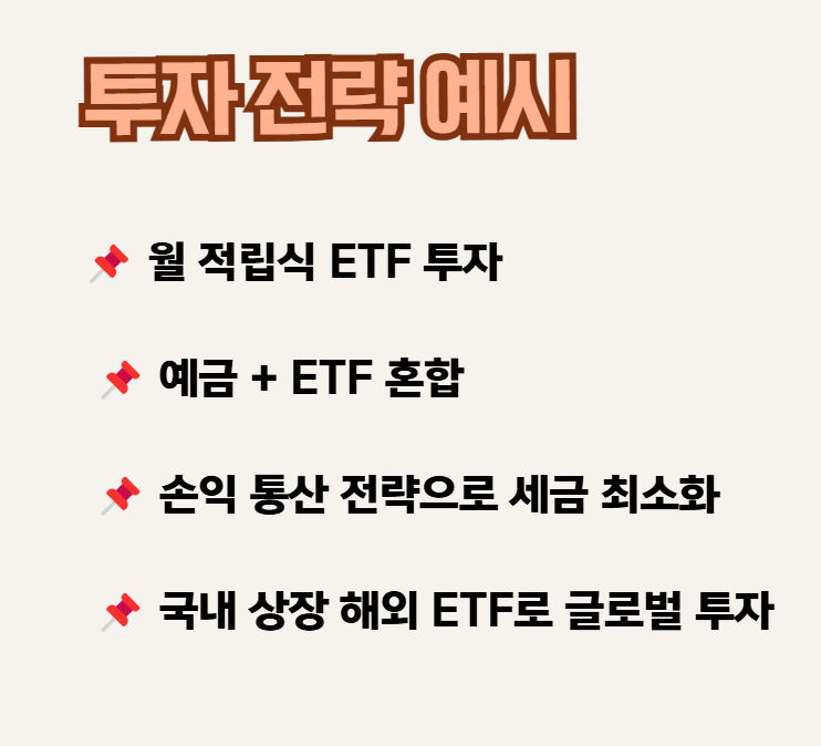 - 특히 국내 상장 해외 ETF 투자 가능 → 글로벌 자산 분산도 가능